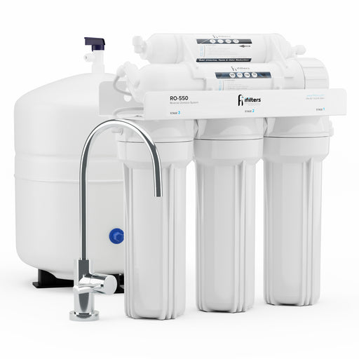 View full detailsiFilters - RO-5100 - 100 GPD Ultimate Reverse Osmosis Filtration System 5 Stage, Chrome Faucet, 4 Gal
