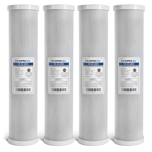 (4 Pack) Hydronix CB-45-2005/4 Whole House Carbon Block Water Filters – 20" x 4.5", 5 Micron High-Performance Filtration for Residential & Comm...
