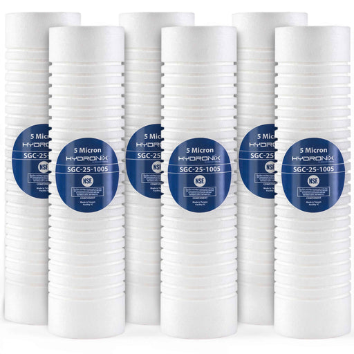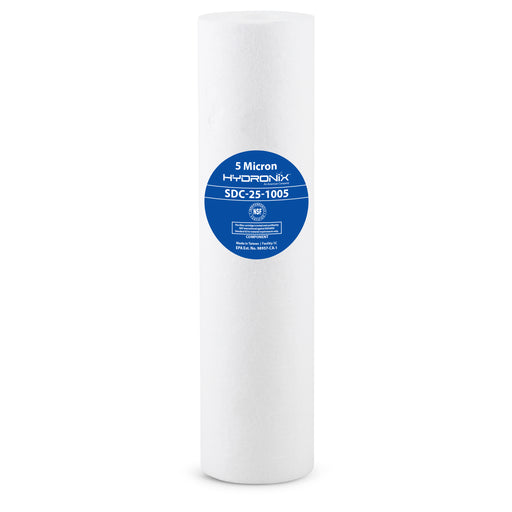 View full detailsHydronix SDC-25-1005 polypropylene sediment filters have a particle retention Size of 5 microns and are used in residential and commercial water fi...