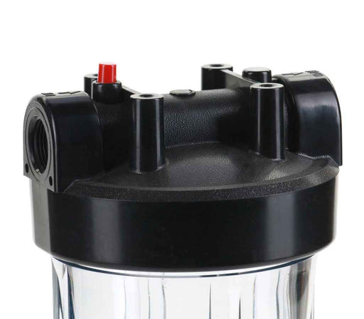The Hydronix HF45-10CLBK10PR 10" Clear Filter Housing (with Pressure Relief Button) is an extra-wide housing that accommodates large 4.5" wide filt...