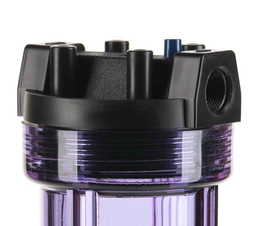 View full detailsThe Hydronix HF45-20CLBK10PR 20" Clear Filter Housing (with Pressure Relief Button) is an extra-wide housing that accommodates large 4.5" wide filt...