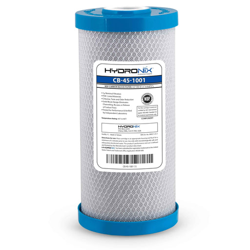 Hydronix CB-45-1010 carbon block filters are NSF/ANSI standard 42 certified for Material and structural Safety. CB-45-1010 filters have a particle ...