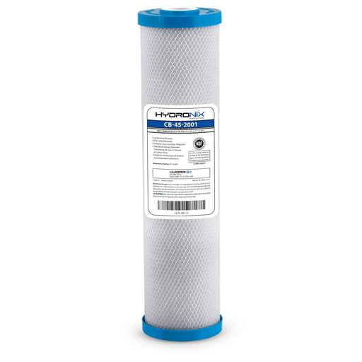 Hydronix CB-45-2001 Carbon Block filters are NSF/ANSI Standard 42 certified for material and structural safety. CB-45-2001 filters have a particle ...