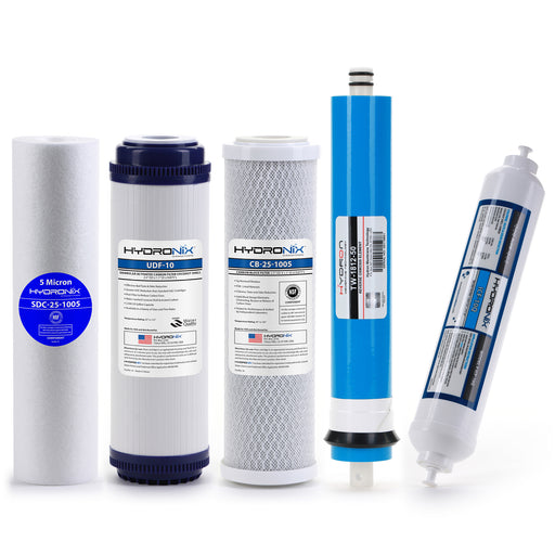Hydronix Reverse Osmosis (RO) Replacement Filter Set – 5 Stage Kit (50 GPD Membrane, 5 Pcs) Compatible with Standard 5-Stage RO Systems The Hydroni...