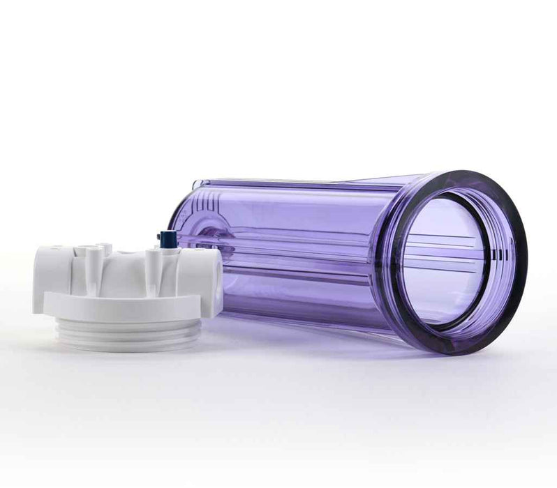 Hydronix 10" Clear Housing, White Rib Cap, RO & Filtration 3/4" Ports w/ Relief