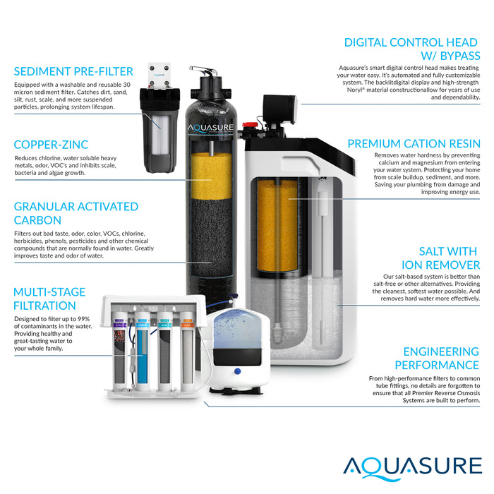 Aquasure Signature Elite 600,000 Gallon Whole House Water Filter + 32,000 Grain Water Softener + 75 GPD RO System – Complete Water Treatment Bundle