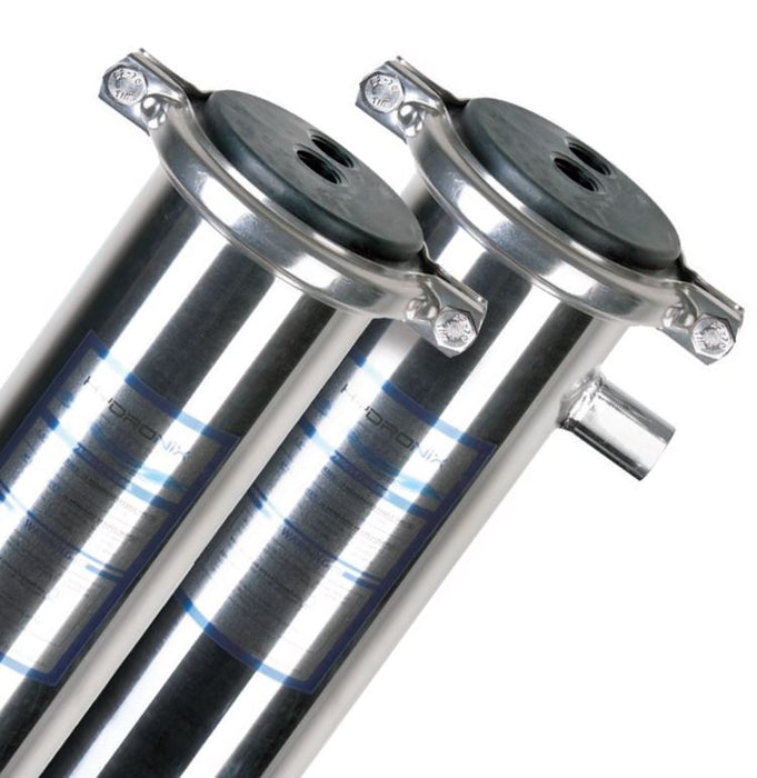 The HYDRONIX SPV-4061 is a high-performance 4-inch x 61-inch stainless steel pressure vessel designed for reverse osmosis (RO) systems. Built to withstand pressures up to 300 PSI, this durable vessel is ideal for commercial and industrial RO applications, ensuring reliable filtration in demanding environments.