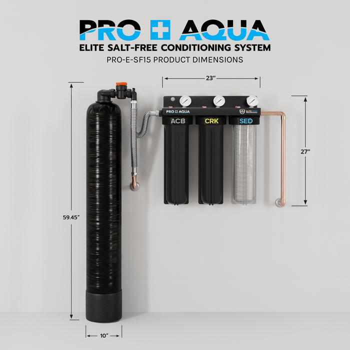This Complete Whole House Water Filtration and Salt-Free Softener Conditioner Package includes the top-selling PRO-100-E 3-Stage ELITE GEN2 Filtration System and the PRO-S-SF15 15 GPM Salt-Free Water Softener/Conditioner. These 2 systems are bundled together to provide 4 stages of unmatched filtration and softening conditioning performance.