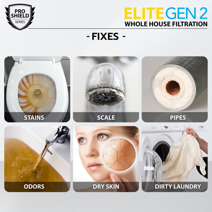Protect your family and appliances from corrosive unhealthy water. This complete package includes the 3-stage PRO-SHIELD series ELITE GEN2 system as the first line of filtration defense followed by the PRO-S-SF15 salt-free water softener/conditioner unit. This bundle has a max flow rate of 15 GPM.
